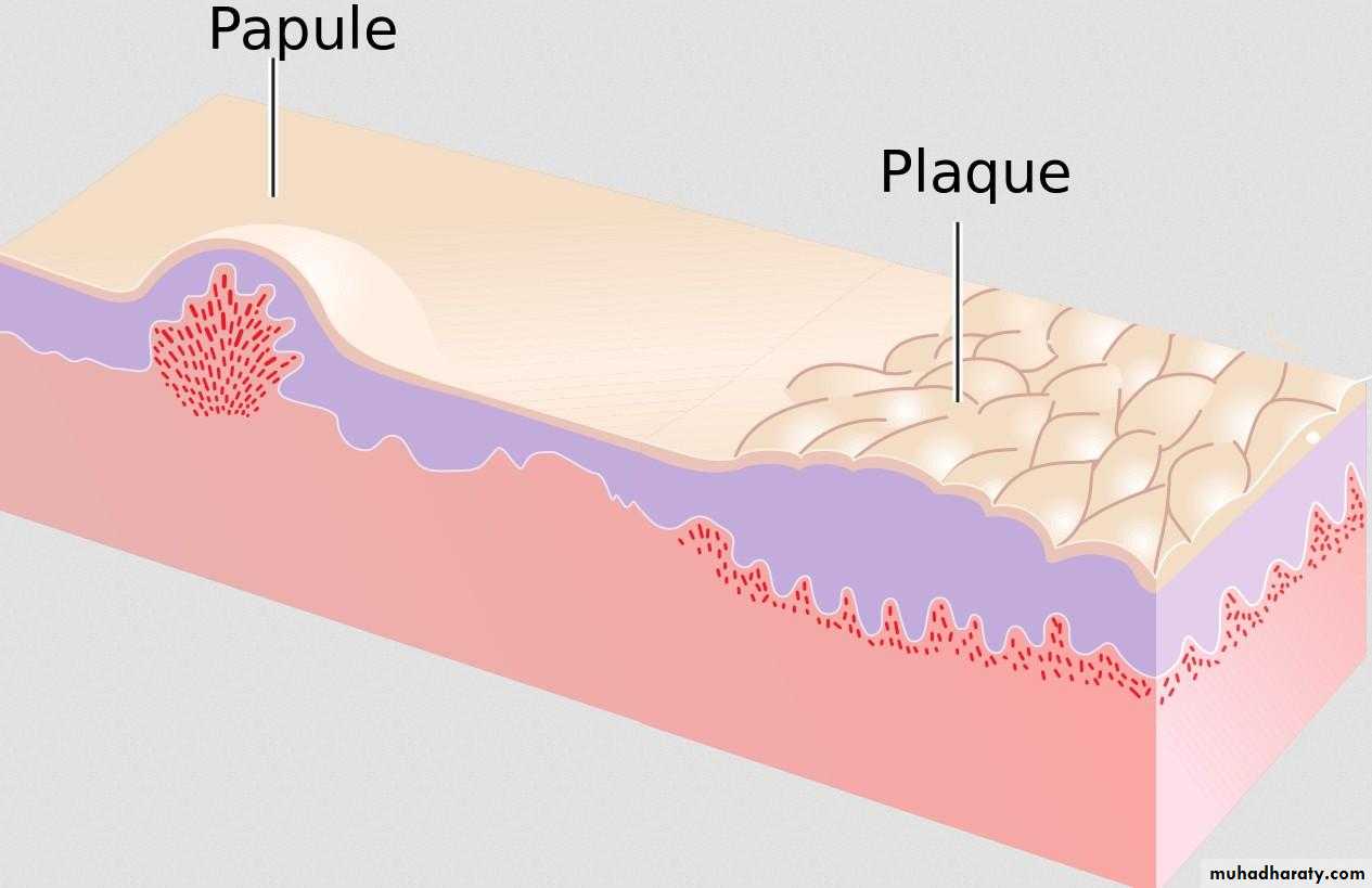 if it is more than 1 cm or confluences of papules, then it is called plaque .