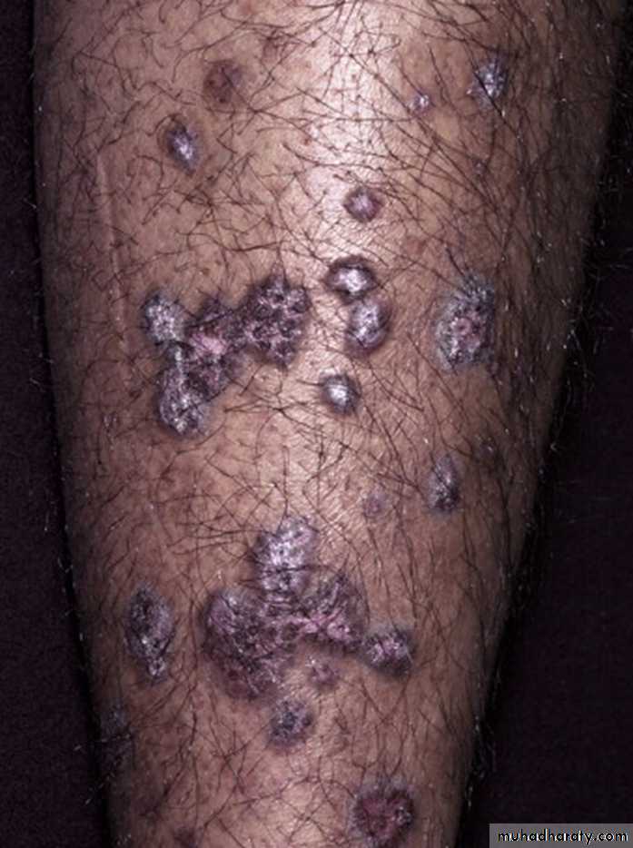 Lesions are typically limited to the trunk (lower trunk) and proximal extremities, but any area could be affected.