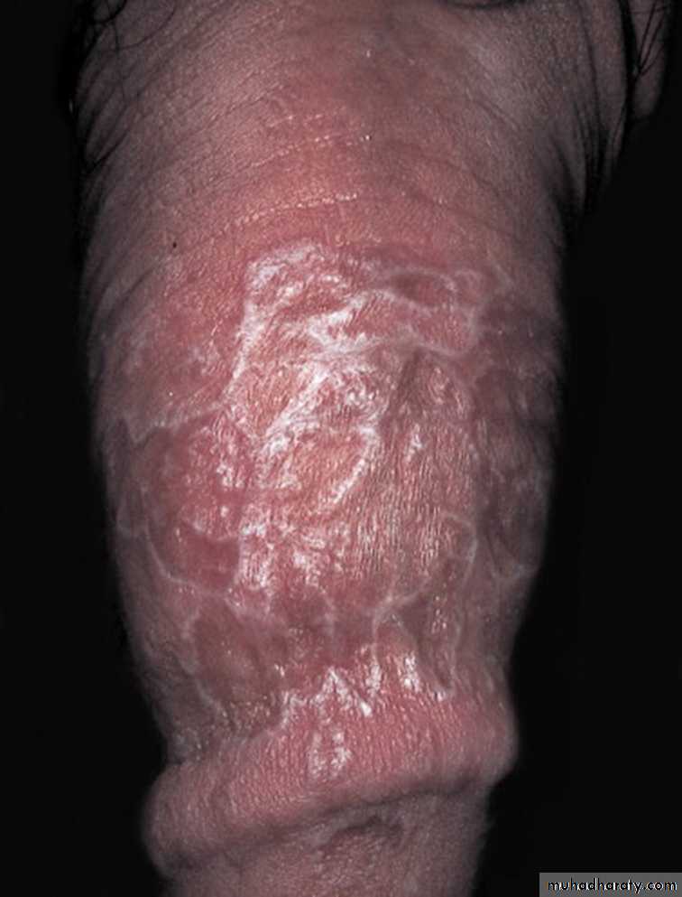 Itch does not necessarily correlate with disease severity.Flexural distribution on wrists and forearms, the legs immediately above the ankles and the lumbar region.