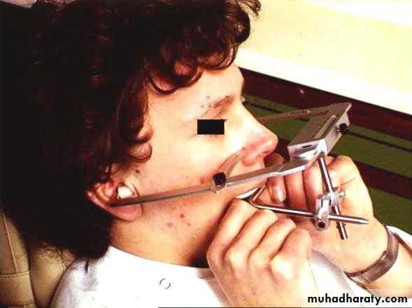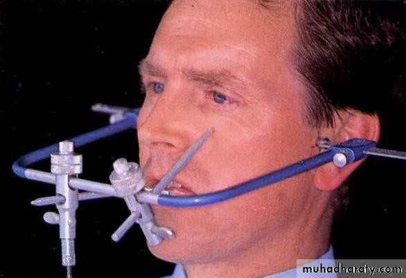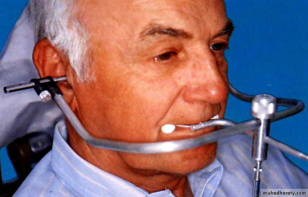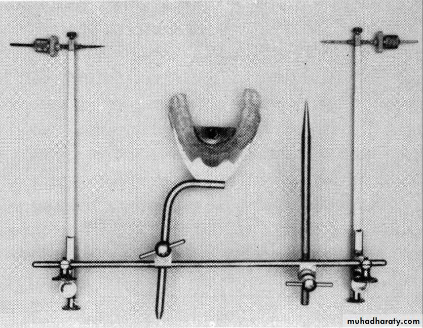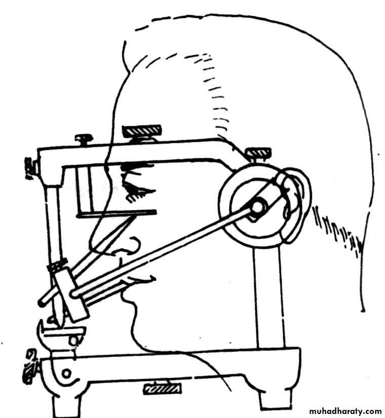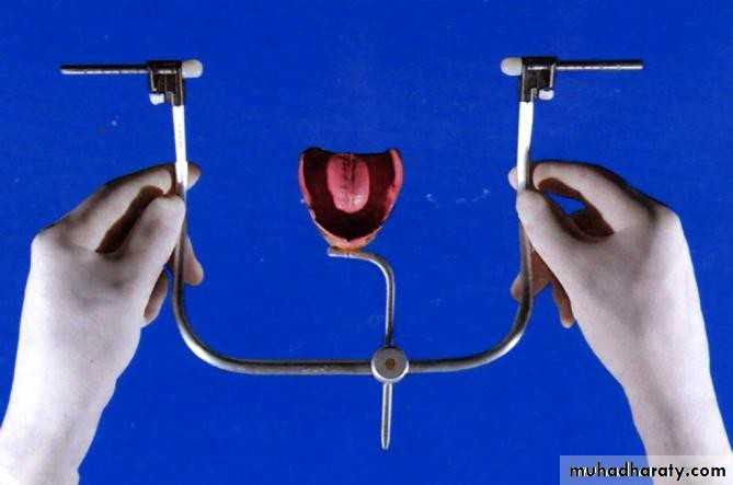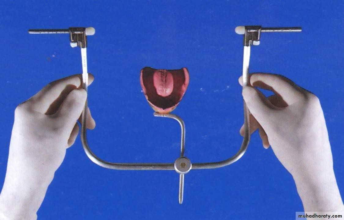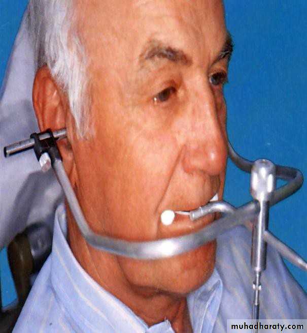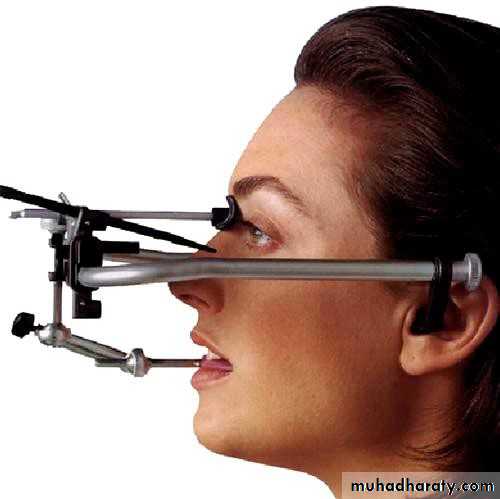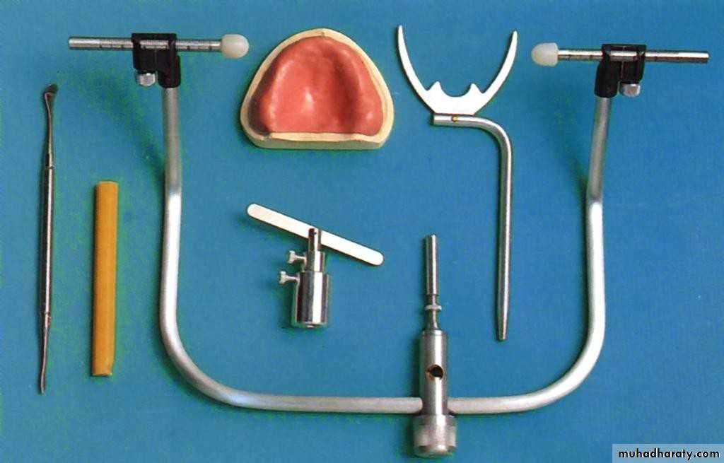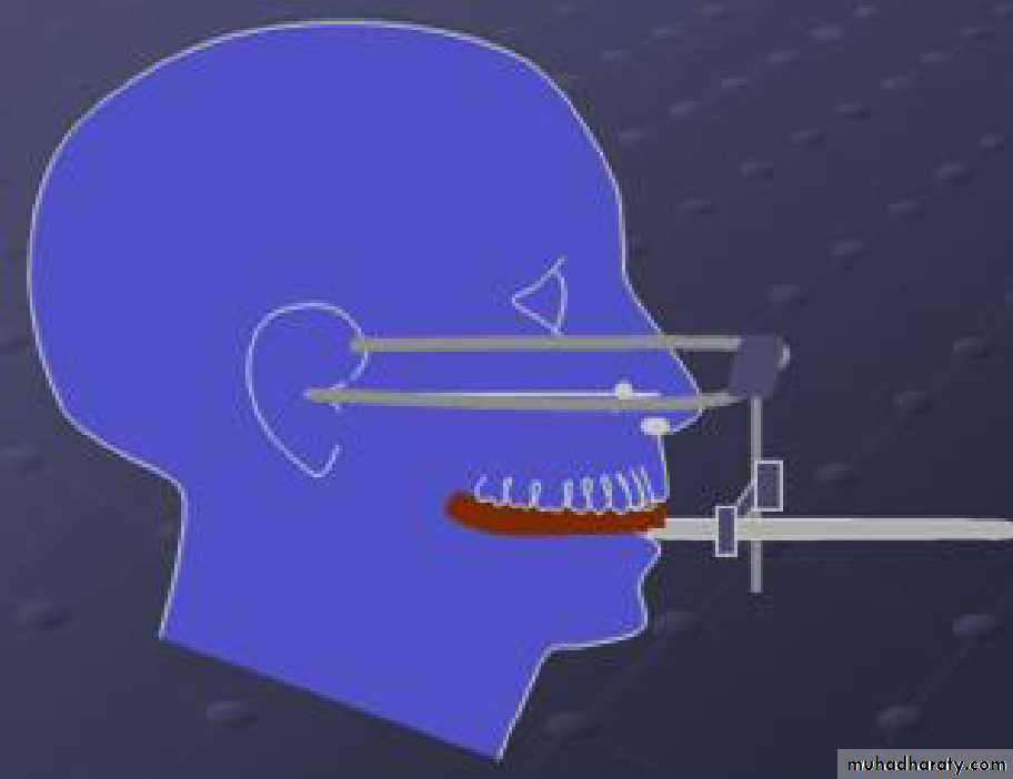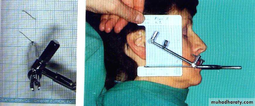 • Face-bow: records the 3-d position of the maxilla relative to a pre-determined planes.