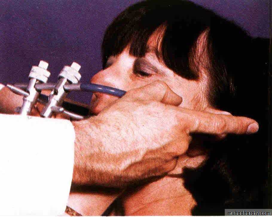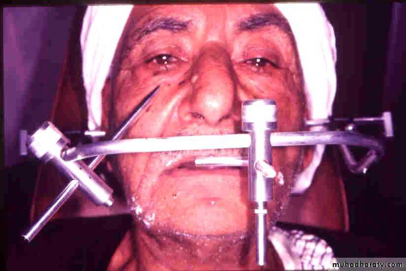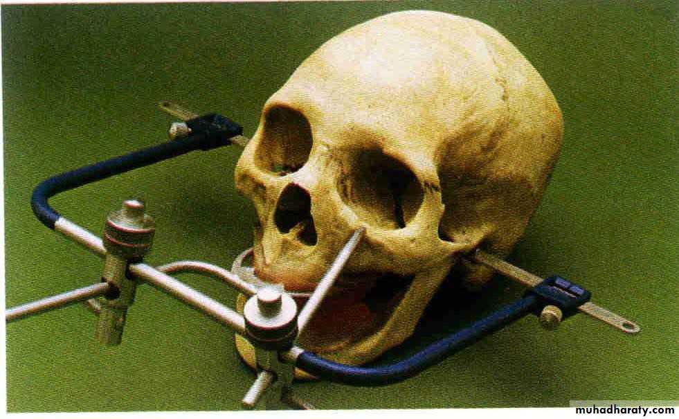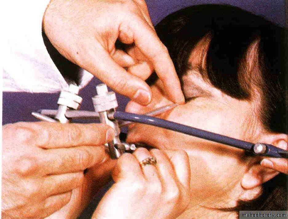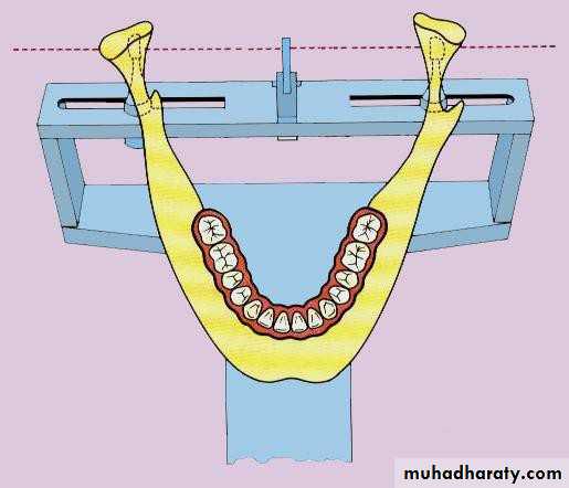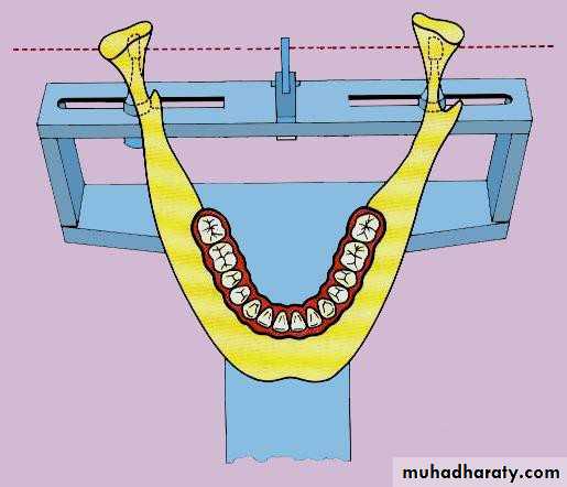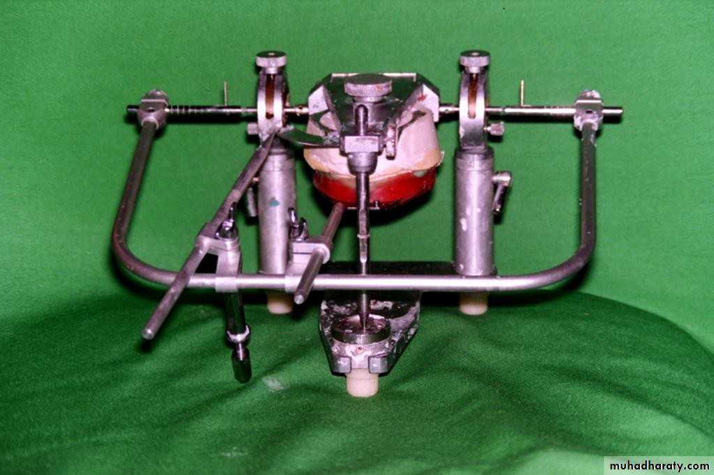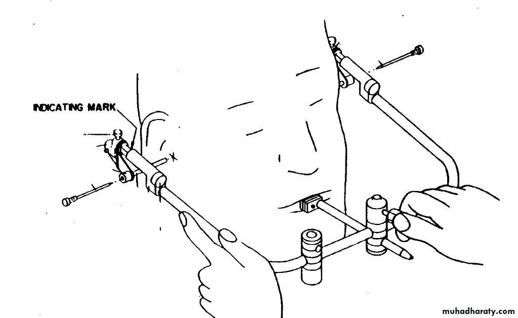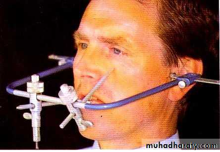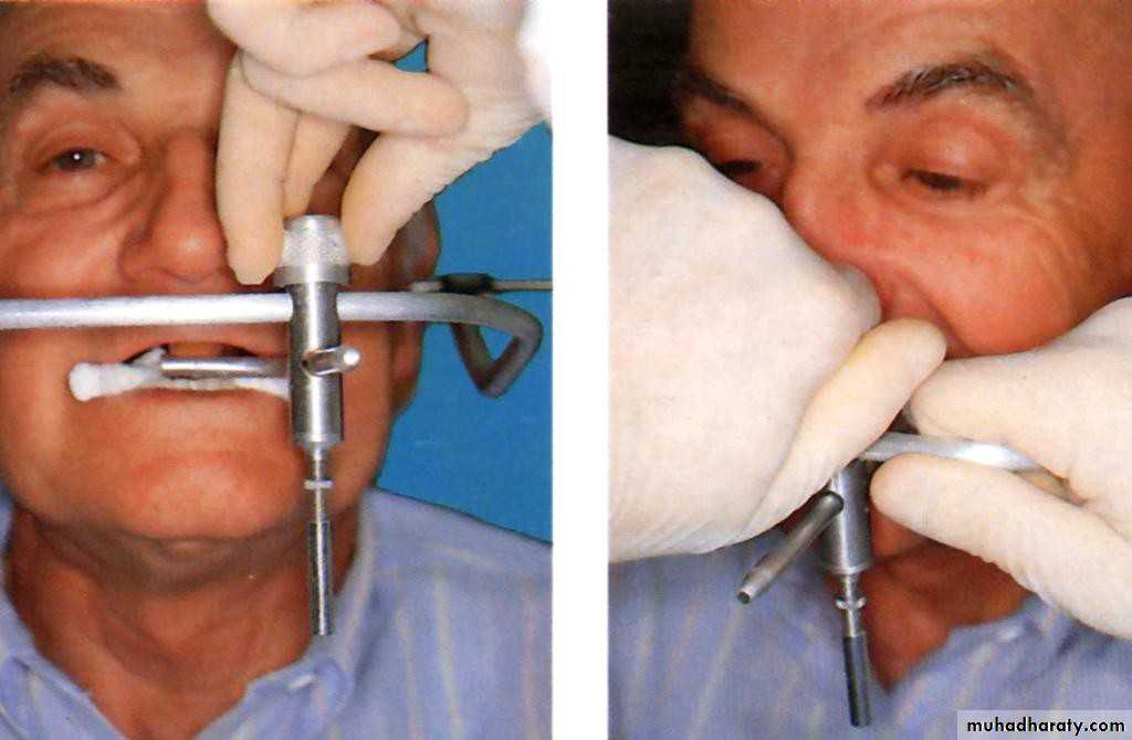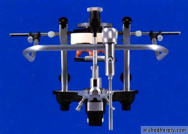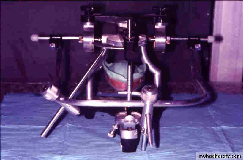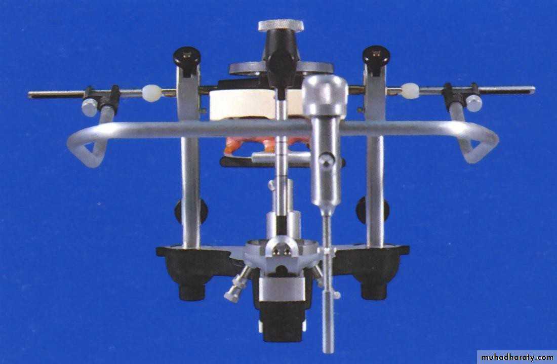 • Face-bow: records the 3-d position of the maxilla relative to a pre-determined planes.