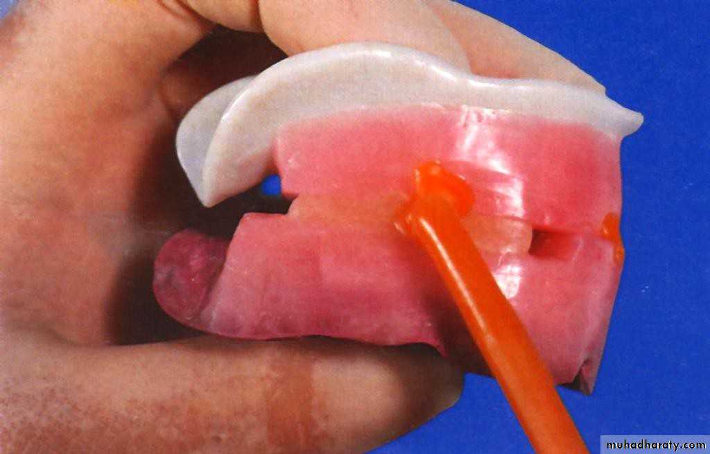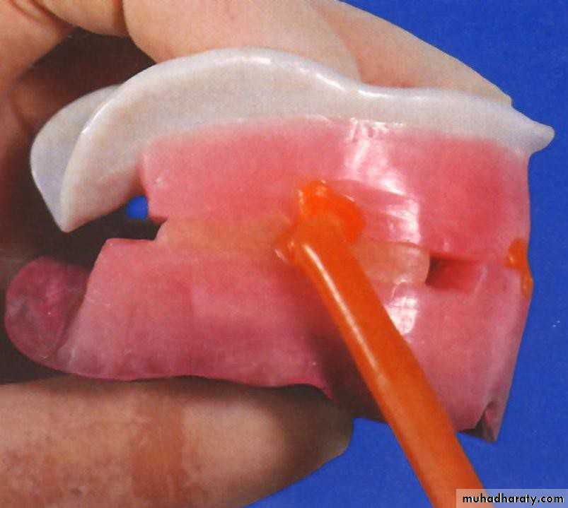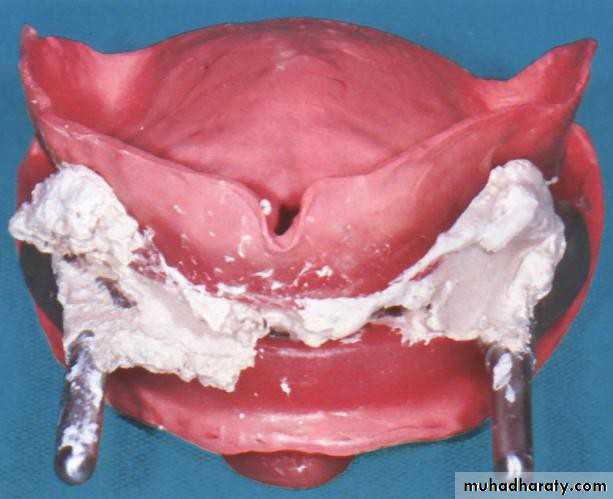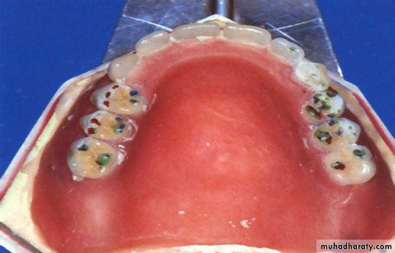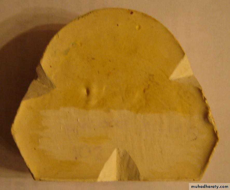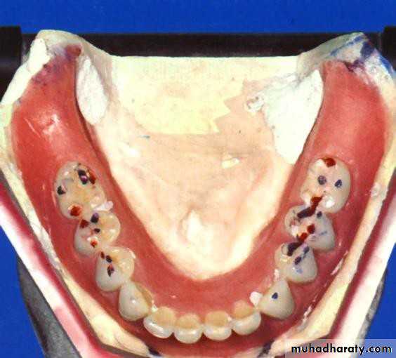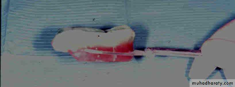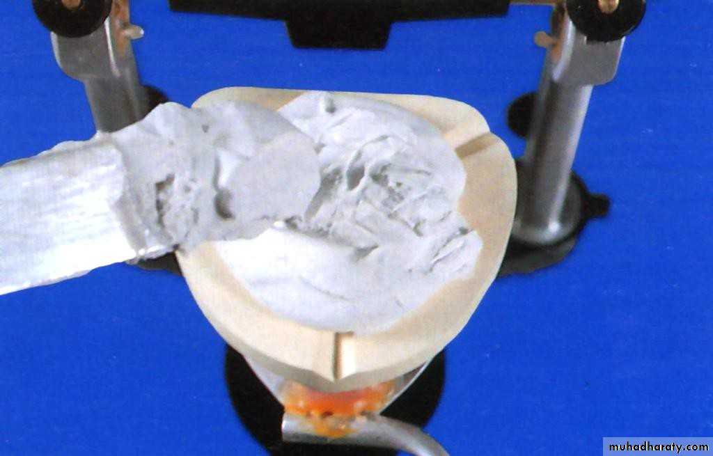 • Casts are prepared for mounting by cutting in thickest part of the base: three V-shaped grooves, two in the posterior section and one in the anterior.