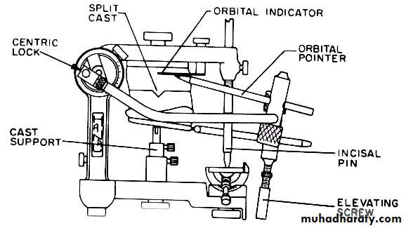 • Not all the semi adjustable art. have orbital plane guides. It allows the casts to be mounted in relation to the axis-orbital plane of the patient