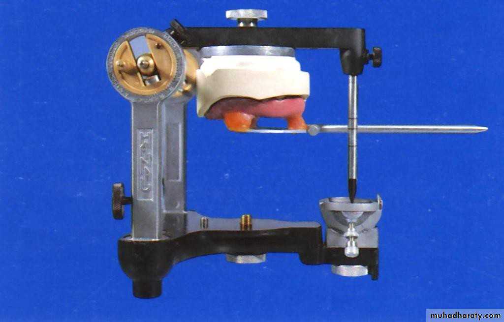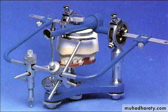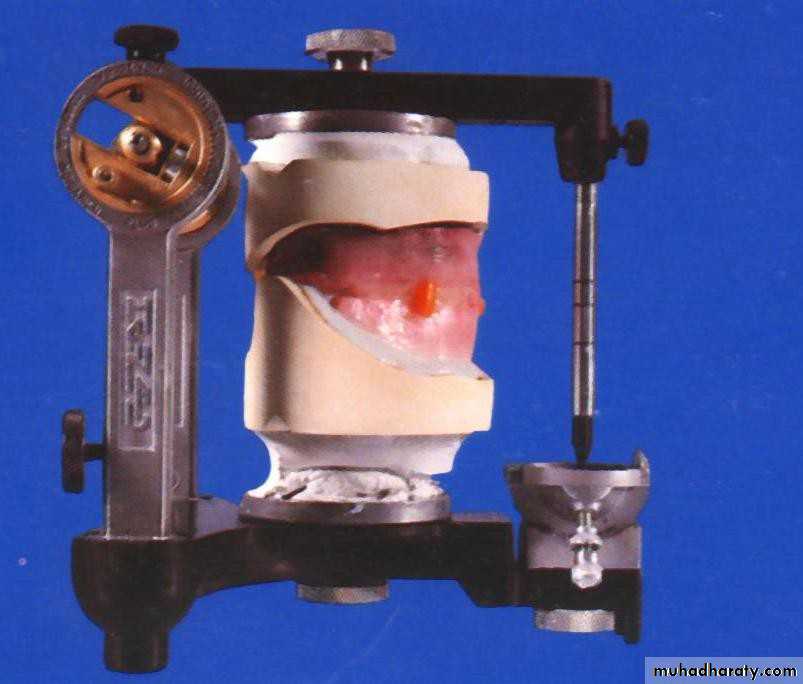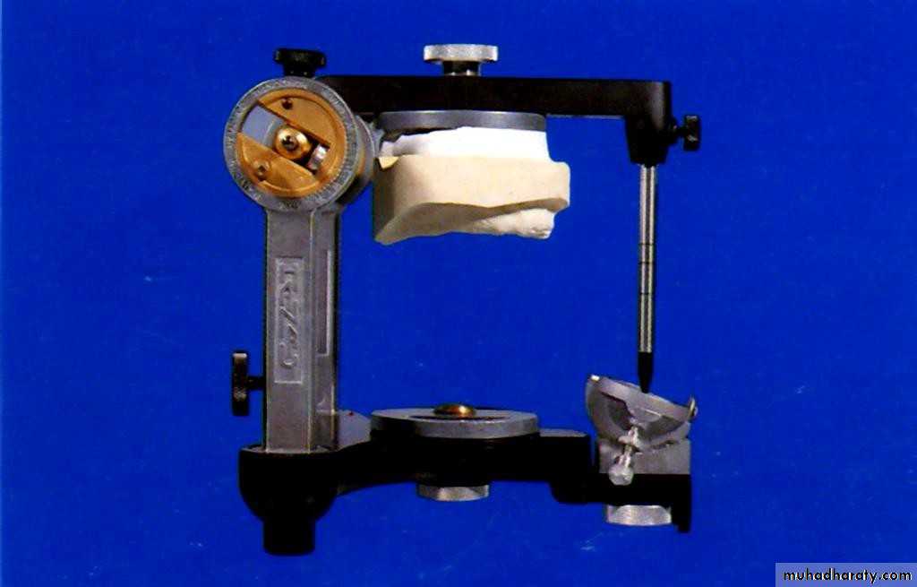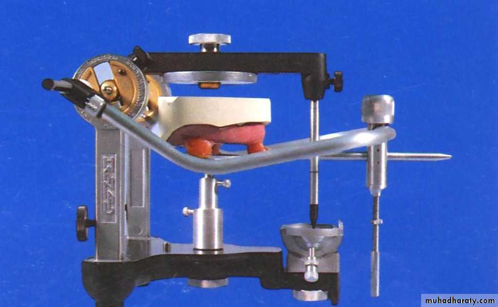 • Some semi-adjustable articulators (for example, the Hanau H series, the Dentatus, and the Gysi) have the condyles attached to the upper member of the instrument (non-arcon), whereas others have the condyle attached to the lower member as occurs in nature (arcon )• Mounting the upper cast