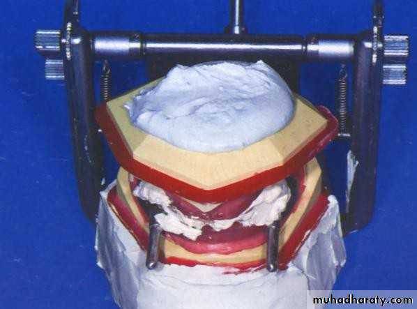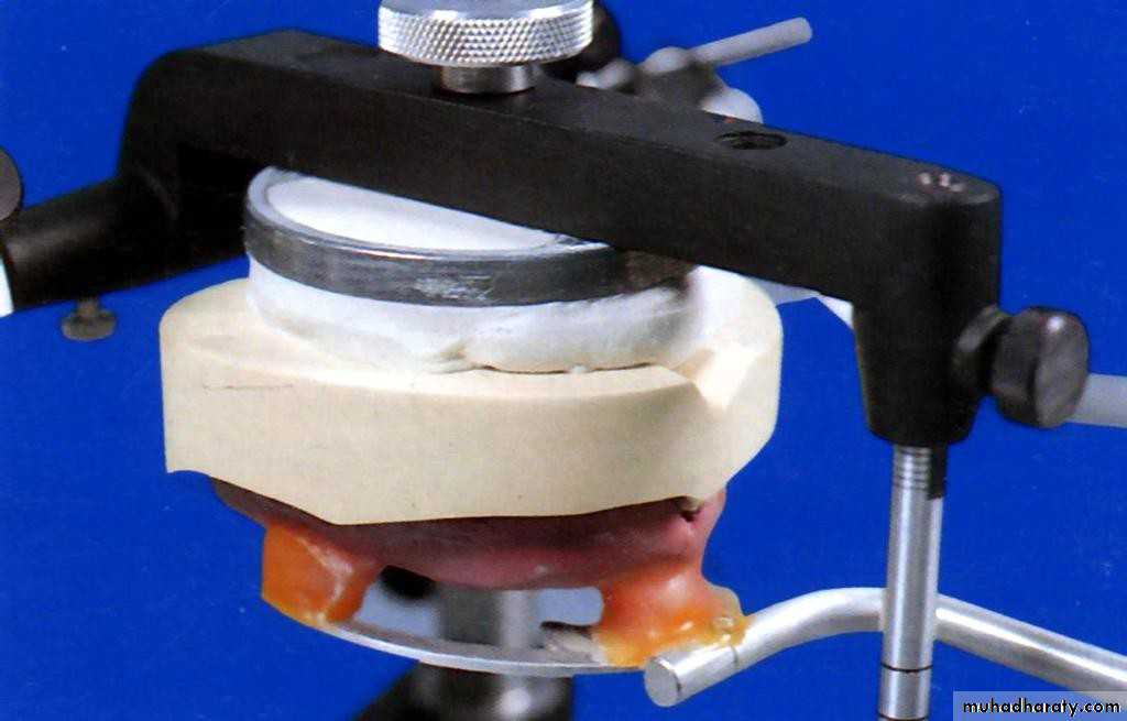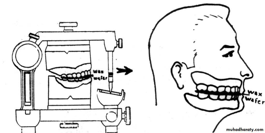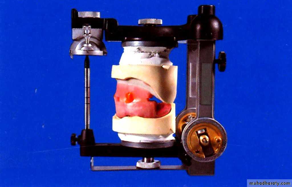 • When the relationship between the maxilla & the axis of rotation has been reproduced, the mandibular cast can be accurately positioned & mounted through the use of an interocclusal record.