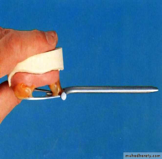 • 3- Bite fork is heated and inserted into the rim midway its height and parallel to its plane.