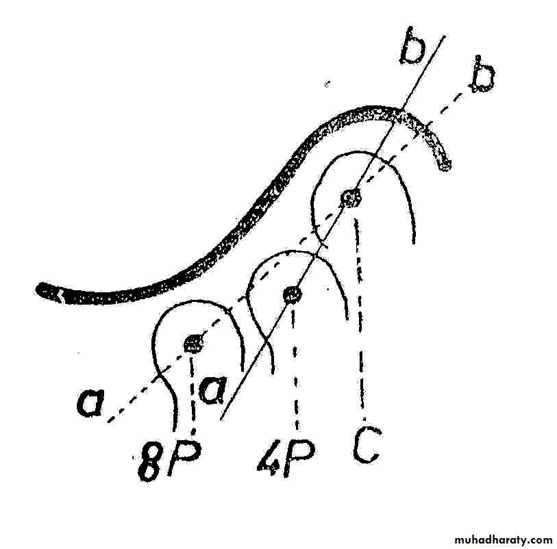 • Limited opening and closing allows the condylar rods to draw arcs. The rods are moved towards the center of the arcs, until they move in a point . The latter is called the still point and represents the condylar axis. The condyle in this position lies in the most retruded unstrained position in the glenoid fossa, so mandible and maxilla are in centric.