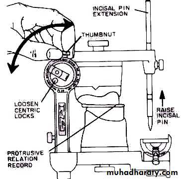 • 1- The condylar axis is determined either: arbitrary or by using mandibular face bow record.