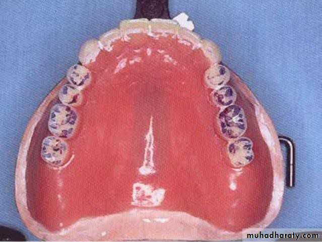 • The teeth should be arranged so that there is maximum interdegitation of the cusps in the opposing fossae (centric occlusion) with the casts in centric relation.