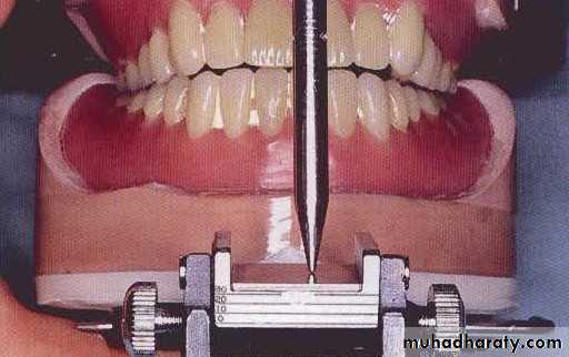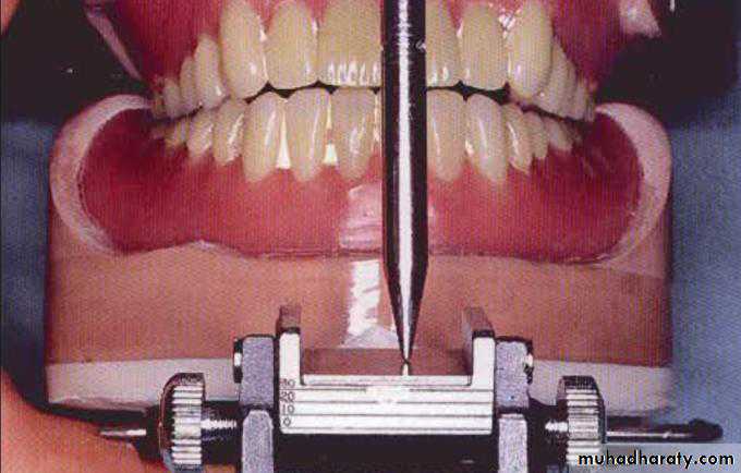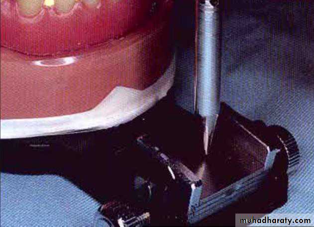 • pointer, the entire face bow with maxillary cast in place• must be raised until the tip of the pointer