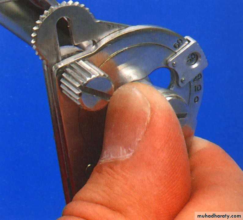 • The distance between the teeth and the axis of rotation on the small instrument is consider shorter than it is in the skull with a resultant less of accuracy.