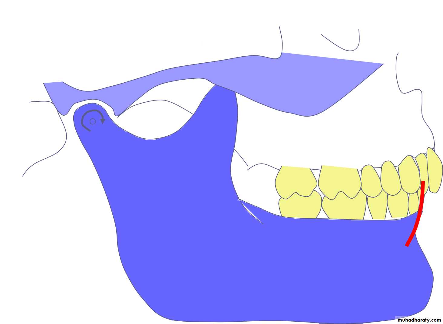 • As the mandible closes around hinge axis (mha), the cusp tip of each mandibular tooth moves along an arc.