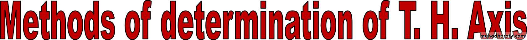 • can be done by drawing a line from the upper margin of the external auditory meatus to the outer canthus of the eye.• The condylar axis lies nearly 13 mm. In front of the anterior margin of the external auditory meatus or 11 mm. anterior to the tragus of the ear.