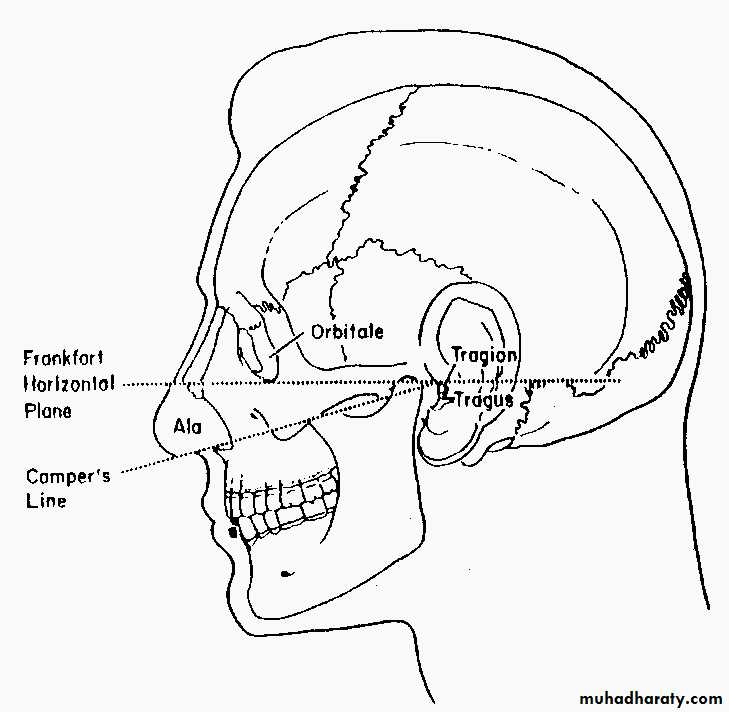 • 2- A third point of reference placed on the lowest point on the infra orbital margin, is determined for establishing the axio- orbital plane.