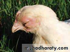 Swelling of the head is caused by inflammatory exudate beneath the skin that accumulates in response to bacteria, usually E. coli, following upper respiratory viral infections (e.g. avian pneumovirus, infectious bronchitis virus).