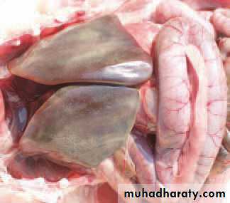The most characteristic lesions are congestion or green discoloration of the liver, marked enlargement and congestion of the spleen, and congested muscles.
