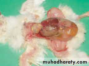When birds become infected with low virulent strains there may be no embryo or chick mortality or some may survive although hatchability, chick livability, and relative yolk weights may be affected ; the only pathologic finding being retention of infected yolk sacs containing caseated yolk.