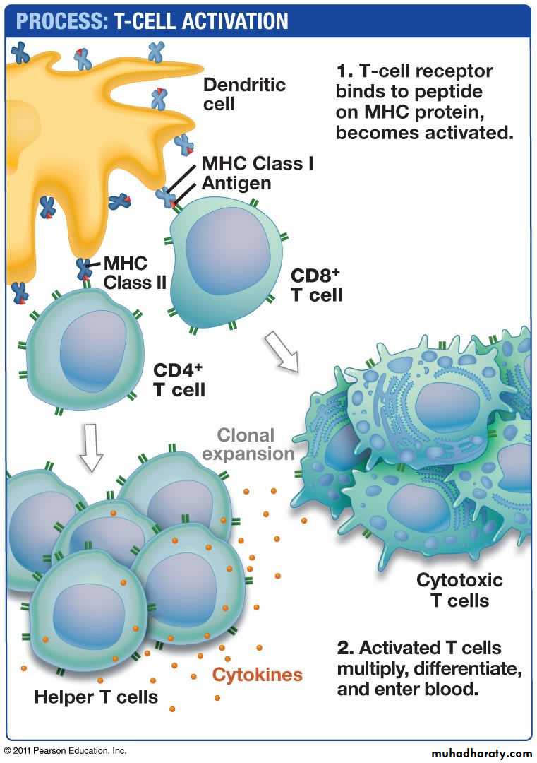 CD8+ T cell: These subset of T cells have CD8 molecule and are called as cytotoxic/killer T cells. They constitute about 30% of T cells.