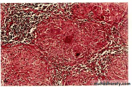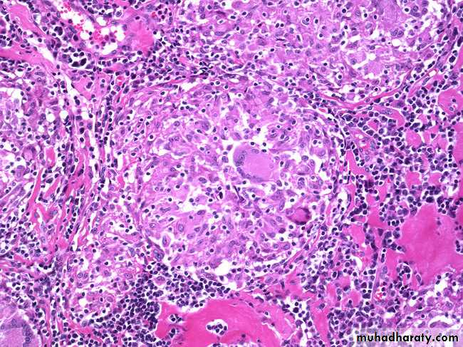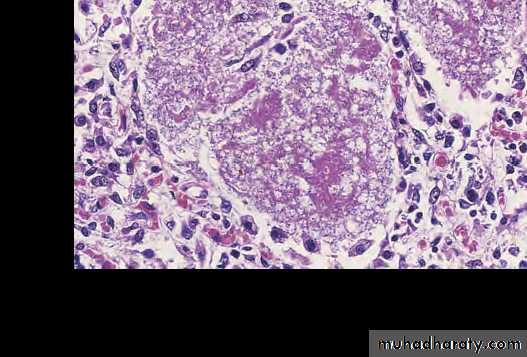 The amyloid deposition is systemic and of AA type. Secondary amyloidosis is due to:1) Infections e.g. T.B.
