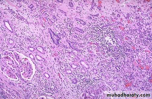 In adrenal gland the amyloid is deposited in the interglandular tissues & the wall of arterioles as an amorphous eosinophilic material as seen by H&E