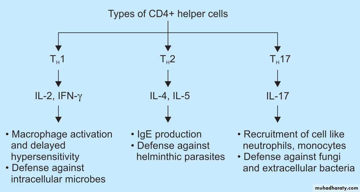 CD4+ T cell: These subset of T cells have CD4 molecule and are called as helper T cells.They constitute about 60% of mature T cells. The CD4 cells function as cytokine-secreting helper cells that help macrophages and B lymphocytes to combat infections.