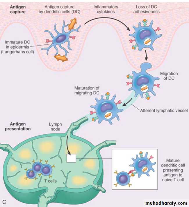 • Common location is below the epithelial lining: Immature dendritic cells within the epidermis are known as Langerhans cells.