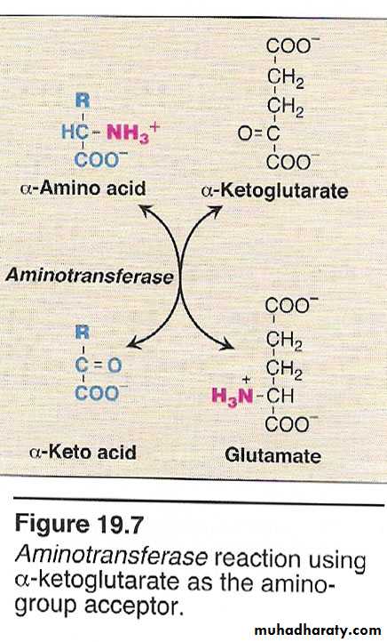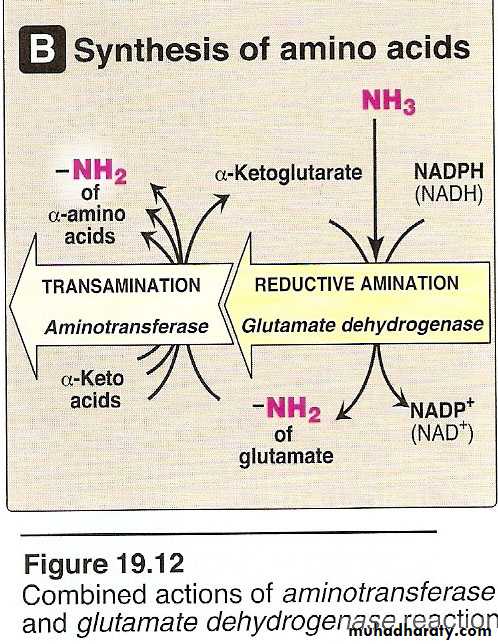 elevated and the reaction proceeds in the direction of amino acid degradation and the formation of ammonia It is converted to α ketoglutarate with liberation of NH3.