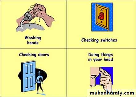 include both mental activities (e.g. counting repeatedly in a special way, or repeating a certain form of words) and repeated but senseless behaviours (e.g.washing the hands 20 or more times a day).