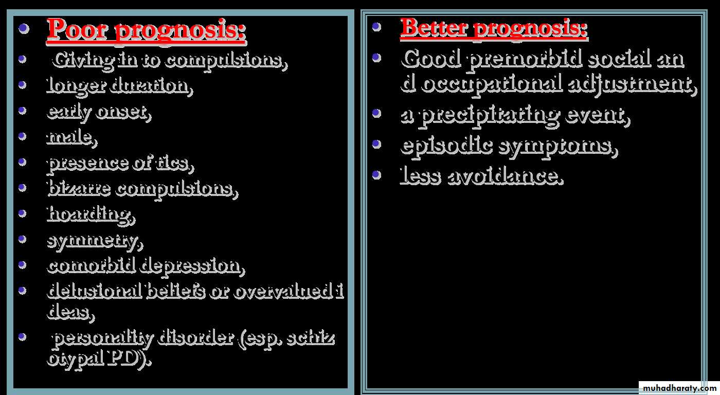 In schizophrenia, 5-45% of patients may present with symptoms of OCD (schizo-obsessive poorer prognosis).