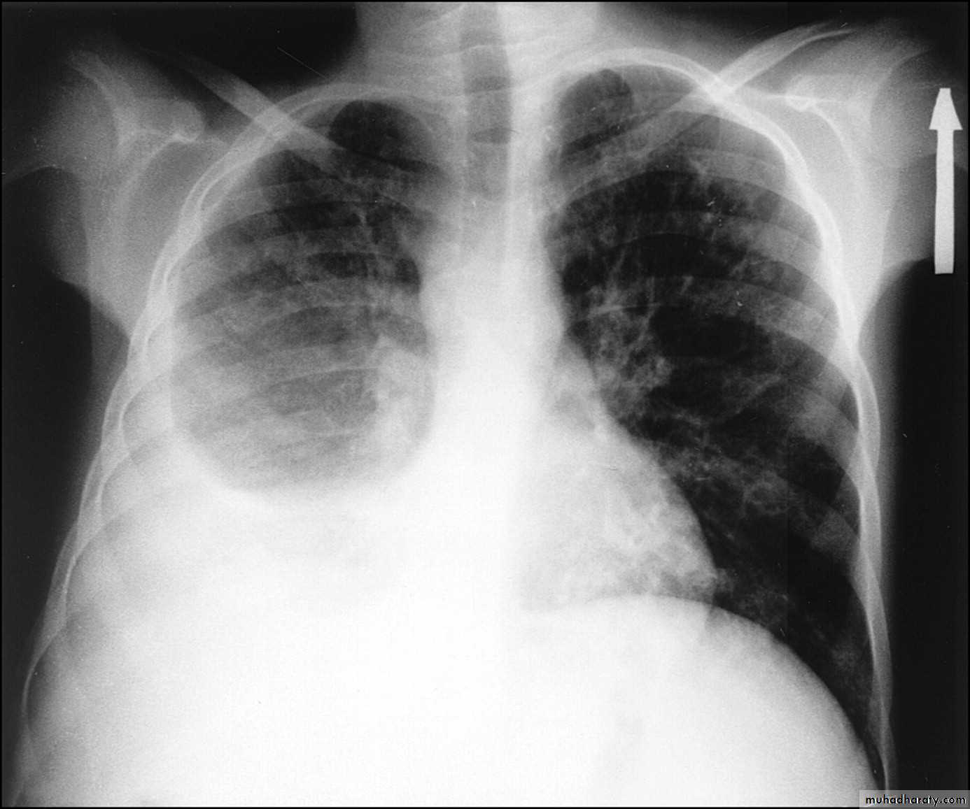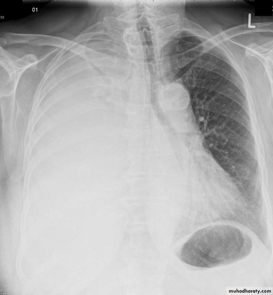 A subpulmonic effusion (infrapulmonary effusion) may be seen when there is previously established pulmonary disease, but can also be encountered in normal lungs , They are more common on the right, and usually unilateral