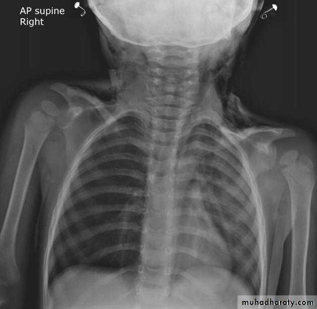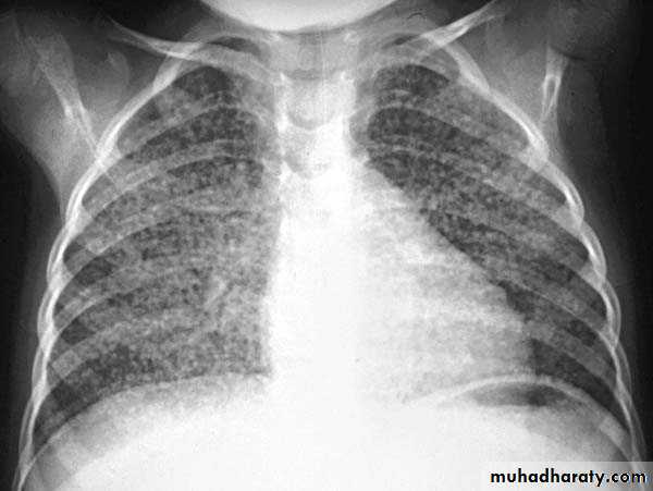 are nonspecific and include 1.increased bronchovascular markings and2.cardiomegaly other added radiological signs