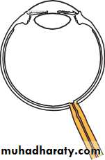 • is of variable thickness, 1 mm around the optic nerve head and 0.3 mm just posterior to the muscle insertions.