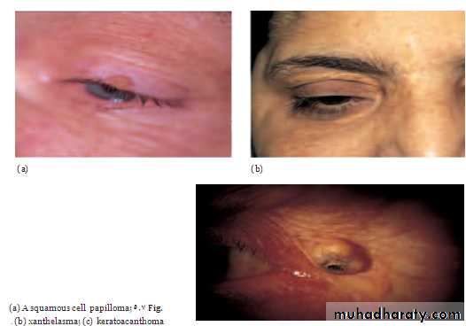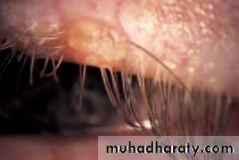 Molluscum contagiosum :- is umbilicated lesion found on the lid margin