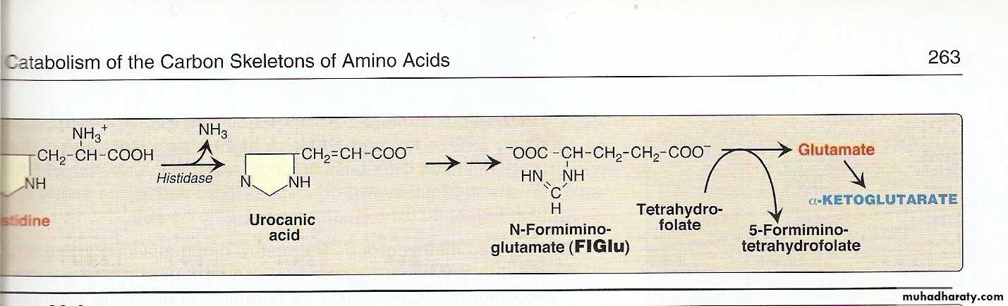 Usually metabolized through histidase which act on histidine to split off ammonia and form urocanate.