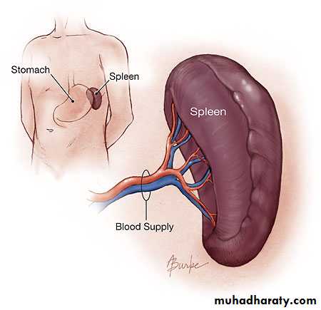 - Lymphatic drainage by lymph vessels of the white pulp.- Accessory Spleen ( Splenunculi ) in hilum most common, pedicle, tail of pancreas, Sp-Colic lig., G.O. & Mesentry.