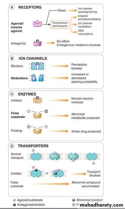 Binding of drugs to receptors could be:Reversible: Effect for short time (reversible bonding forces)..most drugs.
