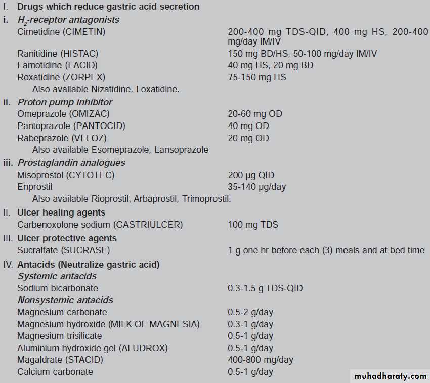 Non-absorbable antiacids : Al-salts (Al2(OH)3, Al-phosphate..)Magnesium salts: Mg-hydroxide, Mg-trisilicate..)