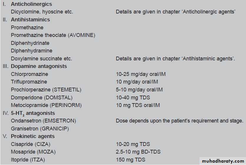These are the drugs which are used to prevent vomiting.Dopamine causes antiemetic action by blocking dopamine (D2) receptors and it also increases gastric motility