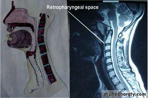 This space lies behind the pharynx and extends from the base of the skull to the superior mediastinum.The anterior wall is formed by the posterior pharyngeal wall and it's covering buccopharyngeal fascia. The posterior wall is formed by the cervical vertebrae and their covering muscles and fascia.