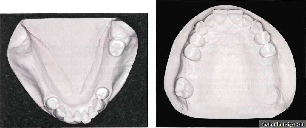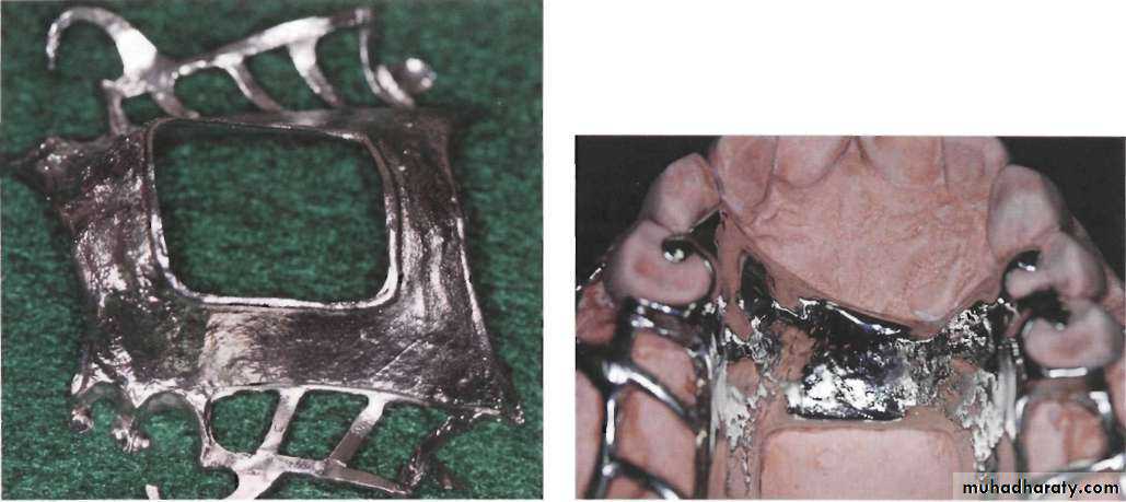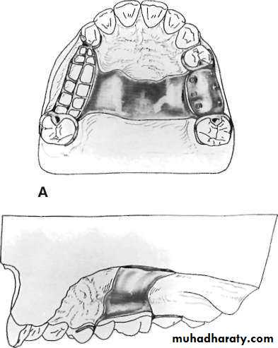 • Anatomic replica form for full palatal metal casting supported anteriorly by positive rest seats.• (2) Palatal linguoplate supported anteriorly and designed for the attachment of acrylic resin extension posteriorly.