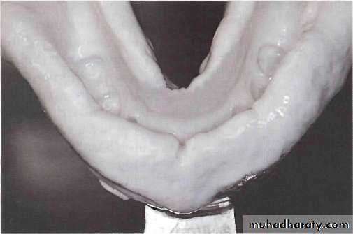 tongue is slightly elevated. This necessitates a functional impression of the lingual vestibule to