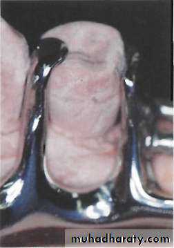 (1) When a linguoplate is otherwise indicated but the axial alignment of anterior teeth is such that excessive blockout of interproximal undercutswould be required.