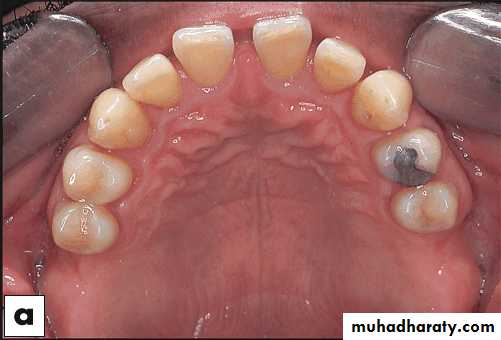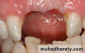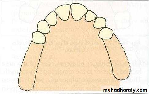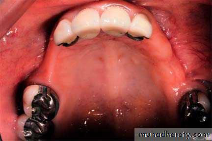 17Class IV: single, bilateral edentulous area located anterior to the remaining natural teeth. This is a single edent. area, which crosses the midline of the arch, with remaining teeth present only posterior to it.