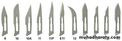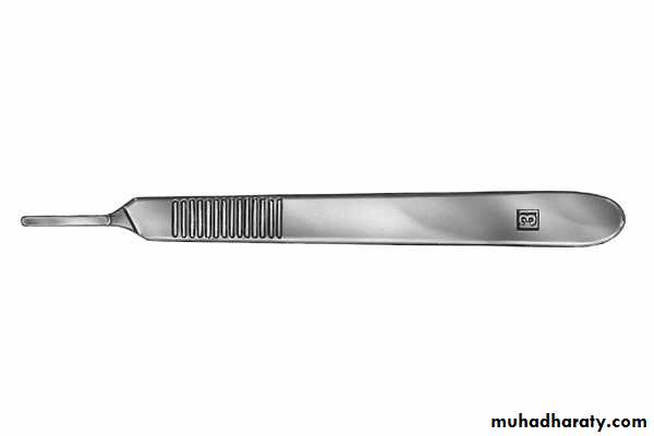 These Instruments used to do incision in the soft tissue and this procedure needs scalpel (handle) and blade, the most commonly used handle is number 3 and number 7. The tip of the scalpel handle is prepared to receive a variety of different scalpel blades that can be inserted into a slotted receiver , the most commonly used scalpel blade for intra oral incisions is number 15 , its relatively small and can be used to make incision around teeth and through mucoperiosteum .