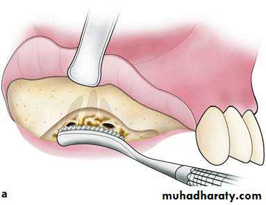 The mucosa and periosteum should be reflected from the underlying bone with periosteal elevator . The instrument that mostly used in our department is Howarth periosteal elevator . this instrument has a sharp pointed end and a broad flat round end .
