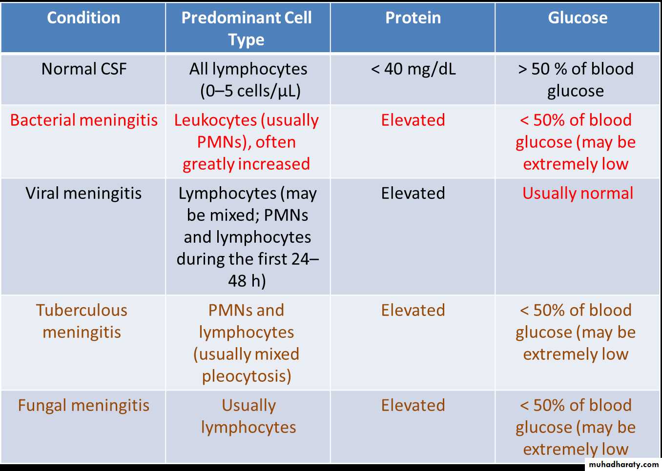 Some viruses, including the West Nile virus, may cause a sustained neutrophilic CSF. The protein content may be elevated but the glucose is normal.