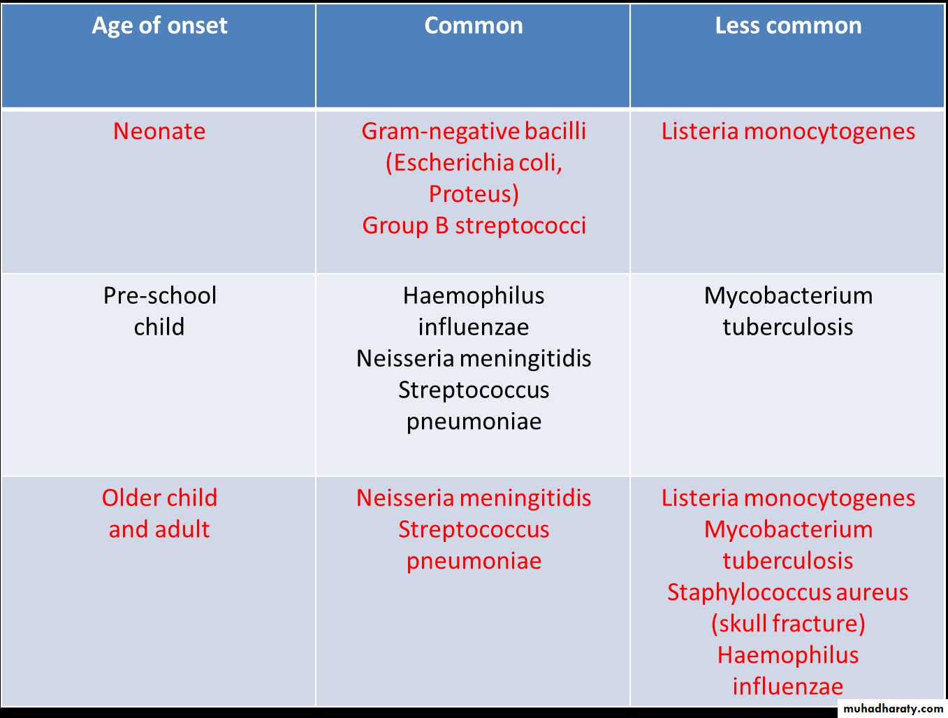 Many bacteria can cause meningitis but geographical patterns vary, as does age-related sensitivity