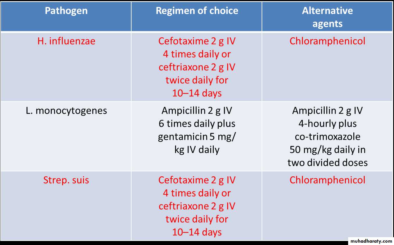 • Chloramphenicol 25 mg/kg IV 4 times daily plus