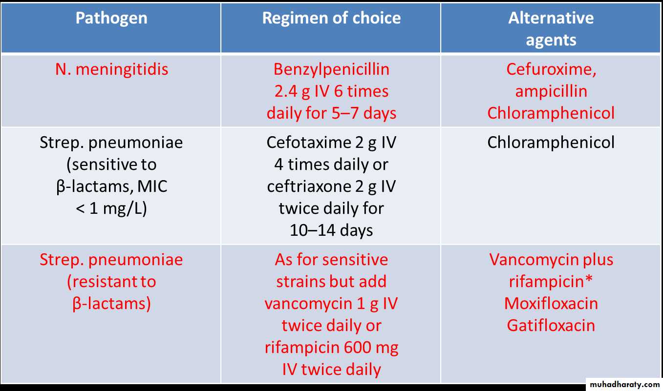 1. Adults aged 18–50 yrs with or without a typical meningococcal rash• Cefotaxime 2 g IV 4 times daily or