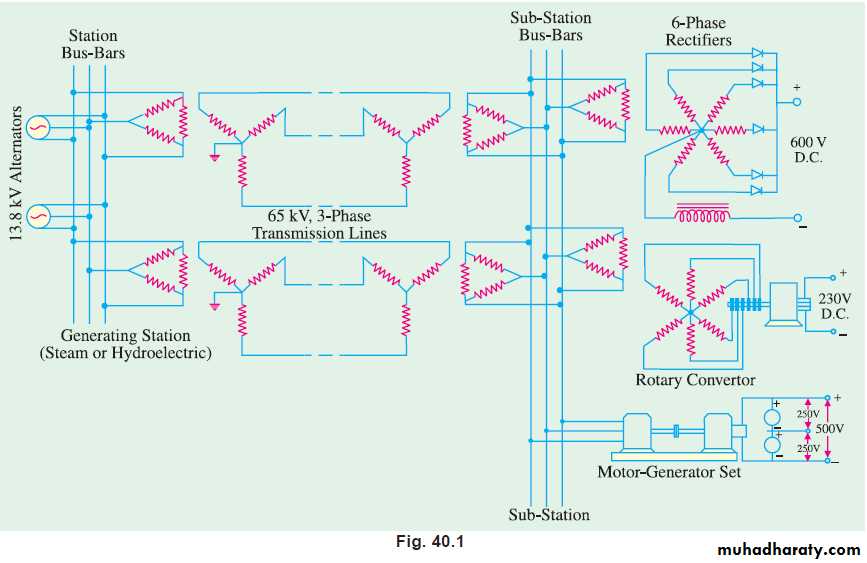 Fig. 40.1 shows a typical power system for obtaining d.c. power from a.c. power.